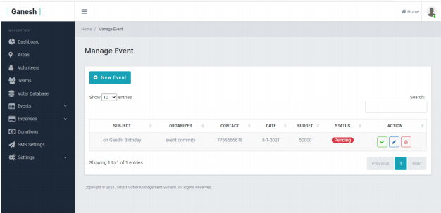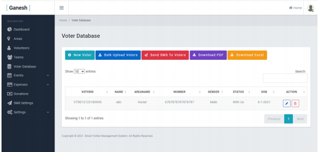 This system is designed to carry out the various activities in connection with the elections to enable the contestant have a tension free , minimized cost election. Further it will help the candidate to have the true picture and build up his relationship with the voters , booth level agents and prominent people related to elections.
